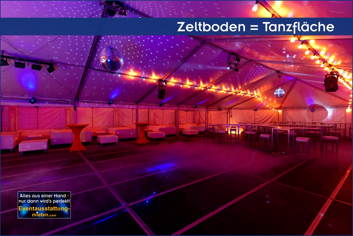 Aus statischen Gründen und zur Einhaltung höchster Sicherheitsstandards erfolgt der Aufbau unserer Discozelte grundsätzlich inklusive eines fest verankerten oder verankerungsfreiem Alu-Kassettenboden oder Schwerlastbodens. Dies schützt Ihre Veranstaltung zudem zuverlässig vor Bodenfeuchtigkeit und Verschmutzungen, sodass die Club-Atmosphäre im Inneren jederzeit makellos bleibt.